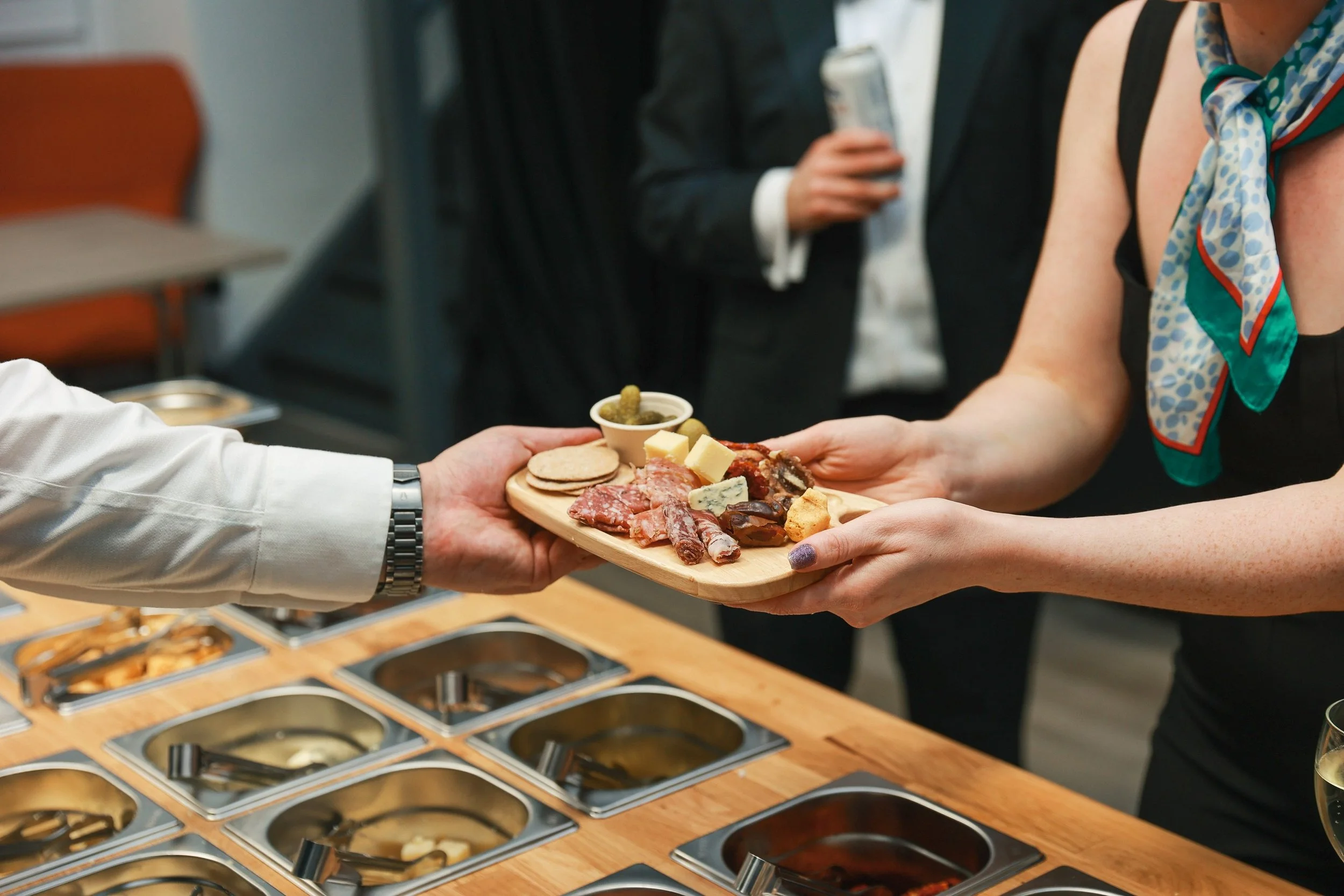 Each guest receives a beautifully curated individual board, allowing them to enjoy considered flavours without returning to a table or waiting for service, and to move freely through the event as it unfolds.